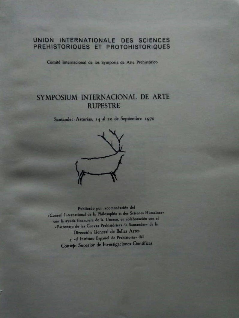 Symposium. Symposium internacional de arte rupestre. Santander - Asturias 14 al 20 de septiembre de 1970. Obra publicada bajo la direccion de Martin Almagro Basch y M. A. Garcia Guinea.