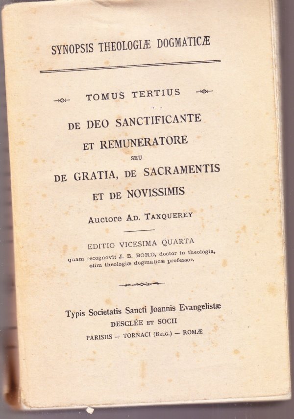 Synopsis Theologiae Dogmaticae. Tomus tertius: De Deo sanctificante et remuneratore seu De gratia, de Sacramentis et de Novissimis