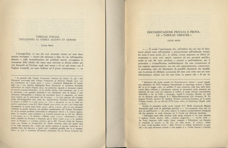 Napoli, Jovene, 1985, due estratti, in-8, brossura editoriale. Estratti da “Sodalitas - Scritti in onore di Antonio Guarino” e da “Labeo - Rassegna di Diritto romano”.