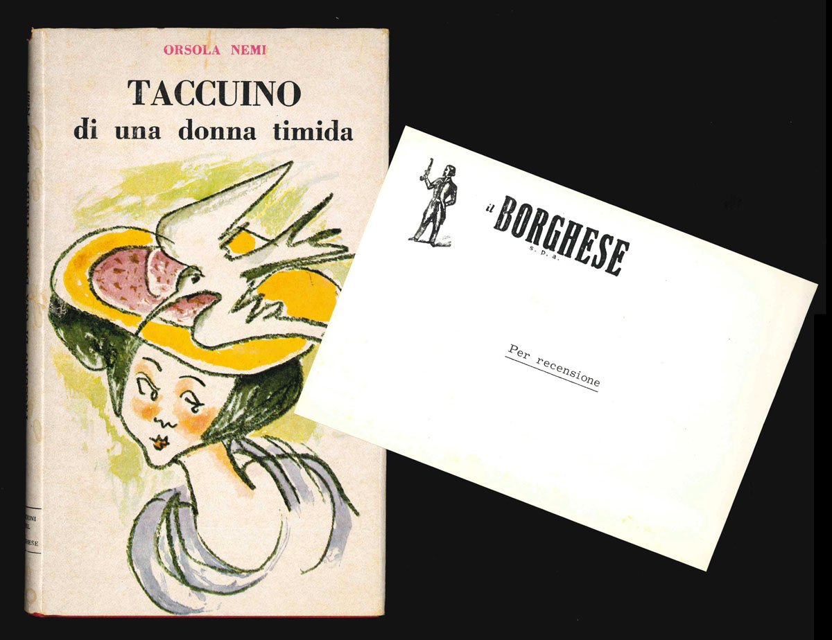 LIBROPrima edizione.Ottimo esemplare, con minimi segni del tempo alla sovracoperta, completo di una bella cartolina a stampa intestata «Il Borghese» e «per recensione».Assidua collaboratrice di quotidiani e riviste - tra cui «La Gazzetta del Popolo», «L’Italiano», «Il Messaggero, «Letteratura» e «il Borghese» -, la scrittrice fiorentina Orsola Nemi raccoglie in questo “Taccuino” apparso nel 1969 per la collana «I libri del borghese» con sovracoperta realizzata da Leo Longanesi: «Appunti tracciati a fil di penna, brevi note, sogni, ricordi, visioni e, ancora, commenti su fatti e misfatti di cronaca, terrestre o spaziale, che hanno per protagonisti Jack Ruby o la Luna, un omicidio o una eclissi, un gatto rosso o Cardarelli».