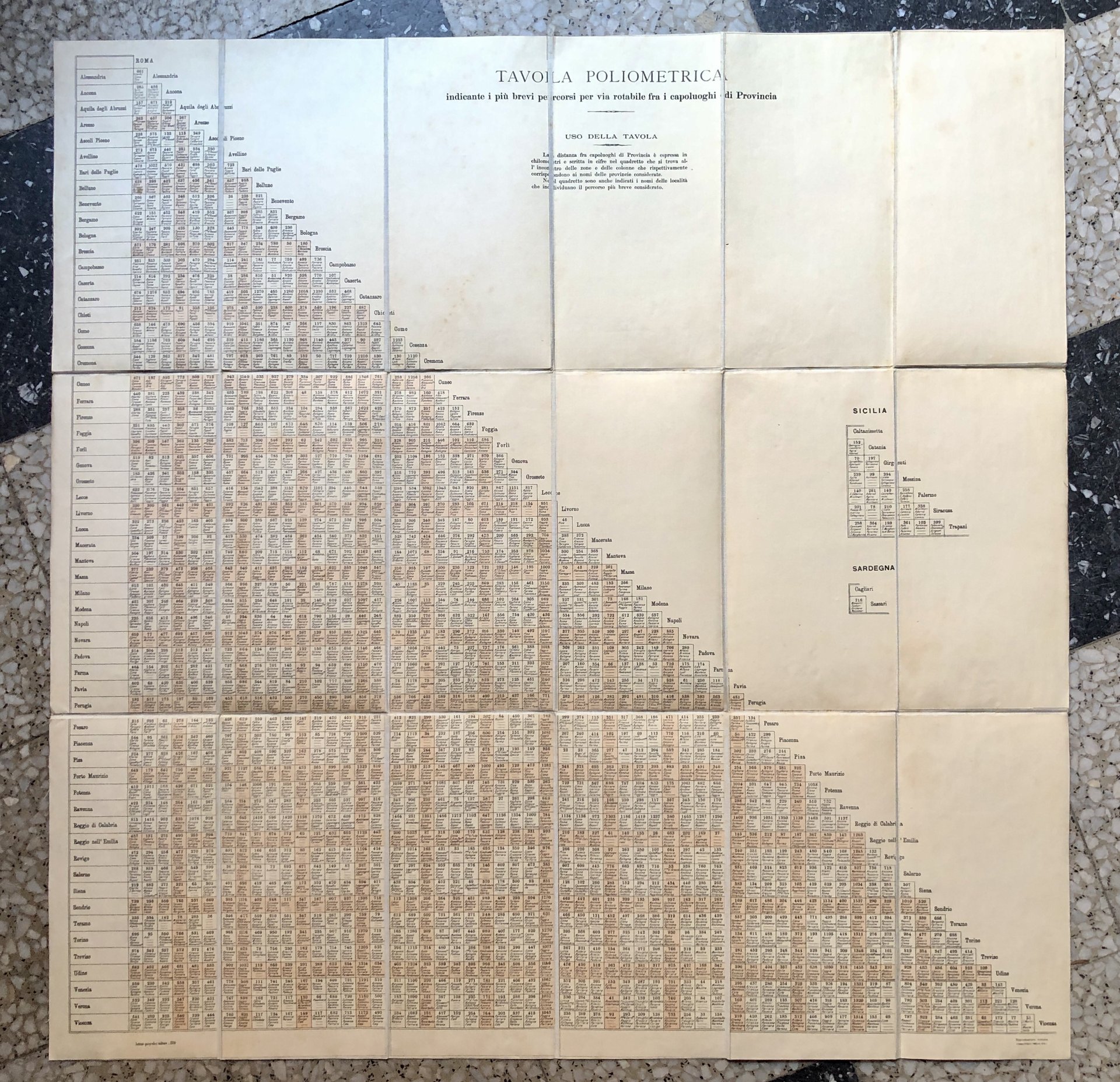 TAVOLA POLIOMETRICA indicante i più brevi percorsi per VIA ROTABILE fra i CAPOLUOGHI di PROVINCIA (in tutta Italia, Sicilia e Sardegna comprese).