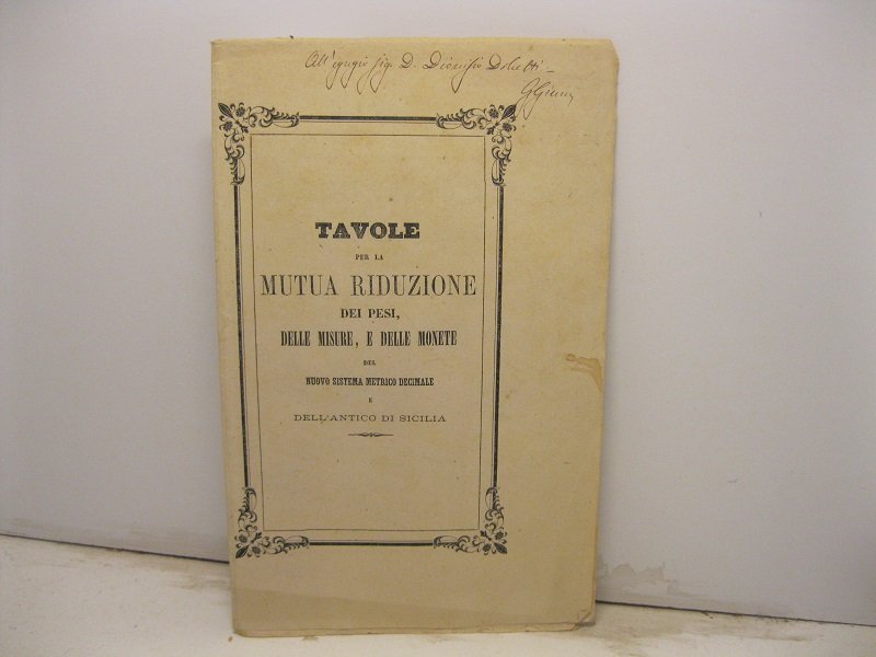 Tavole per la mutua riduzione dei pesi, delle misure e delle monete del nuovo sistema metrico decimale e dell'antico di Sicilia