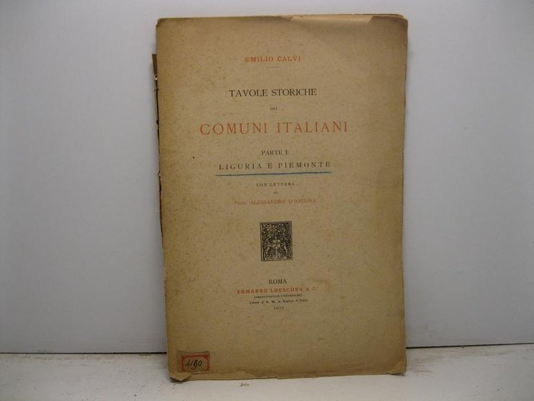 Tavole storiche dei comuni italiani. Parte I. Liguria e Piemonte con lettera del Prof. Alessandro D'Ancna