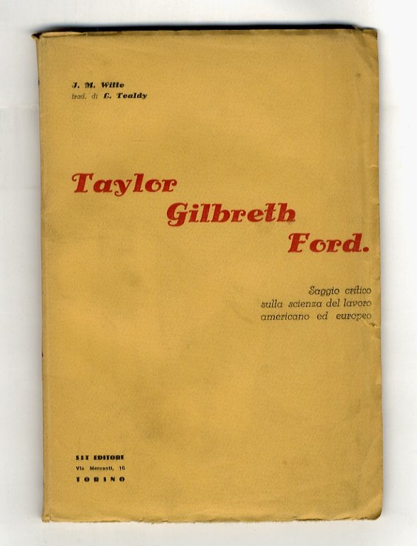 Taylor, Gilbreth, Ford. Studio comparativo sulle scienza del lavoro americana ed europea. Traduzone di L. Tealdy.