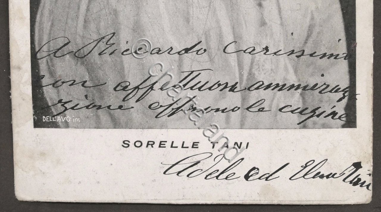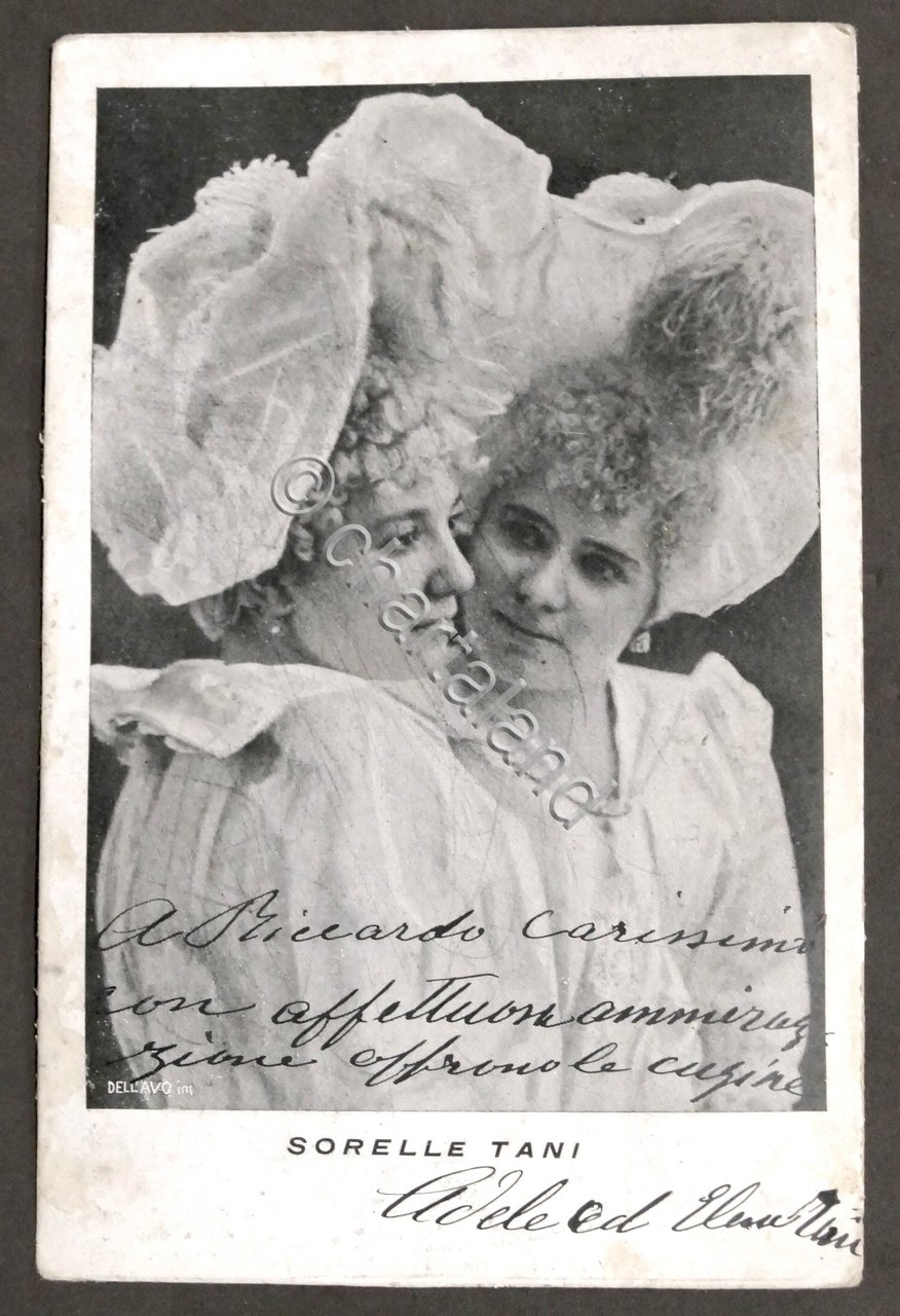 Teatro - Cartolina con autografo attrici di operetta Adelina (Adele) ed Elena Tani - inizio '900 Dimensioni: 9 x 14 cm ca. Buone condizioni generali. Qualche abrasione al retro.