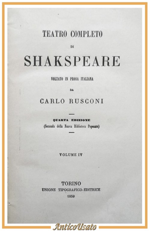 TEATRO DI SHAKESPEARE volume 4 e 5 Enrico IV VI Riccardo II III 1859 UTET Libro
