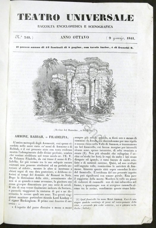 Teatro Universale - Raccolta Enciclopedica e Scenografica - Anno Ottavo - 1841