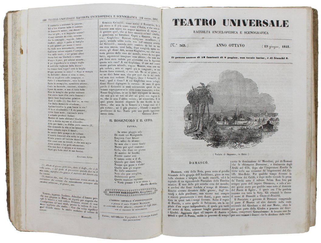 TEATRO UNIVERSALE. Raccolta enciclopedica e scenografica. Anno ottavo - 1841