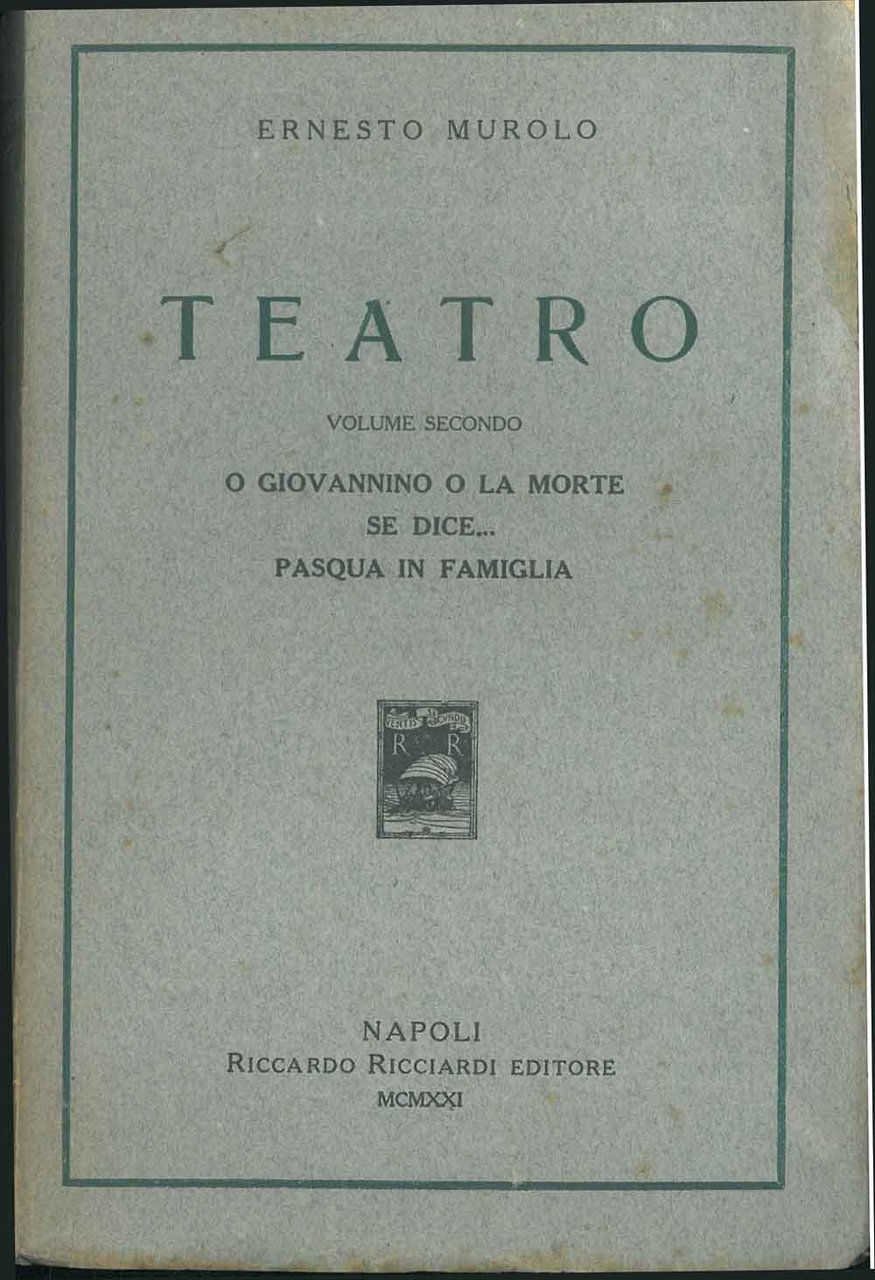 Teatro. Volume secondo: "O Giovannino o la morte" (Dalla novella di Matilde Serao) "Se dice." Pasqua in famiglia