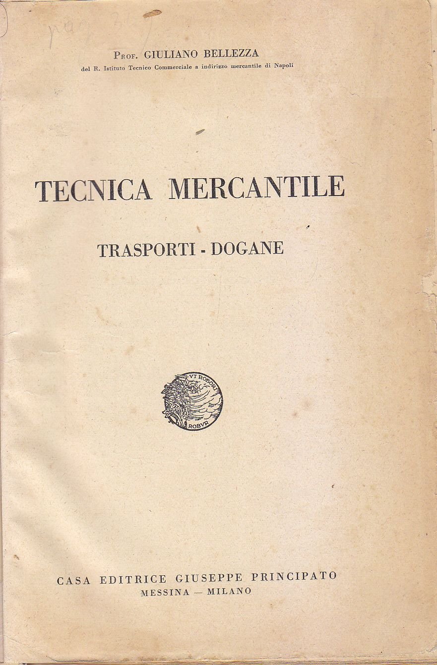 TECNICA MERCANTILE trasporti dogane di Giuliano Bellezza. Principato Editore 1935. 501 pagine, numerose tavole pieghevoli nel testo.
