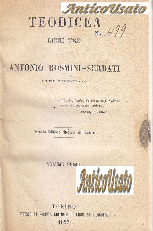TEODICEA di Antonio Rosmini Serbati 1857 OPERA COMPLETA libri filosofia antico