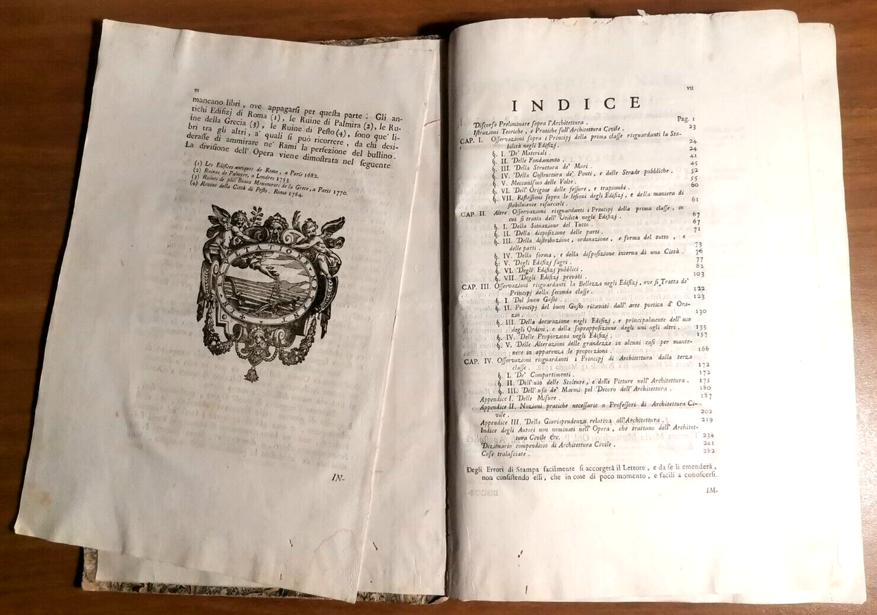 TEORIA E PRATICA DI ARCHITETTURA CIVILE Girolamo Masi 1788 Fulgoni Libro Antico