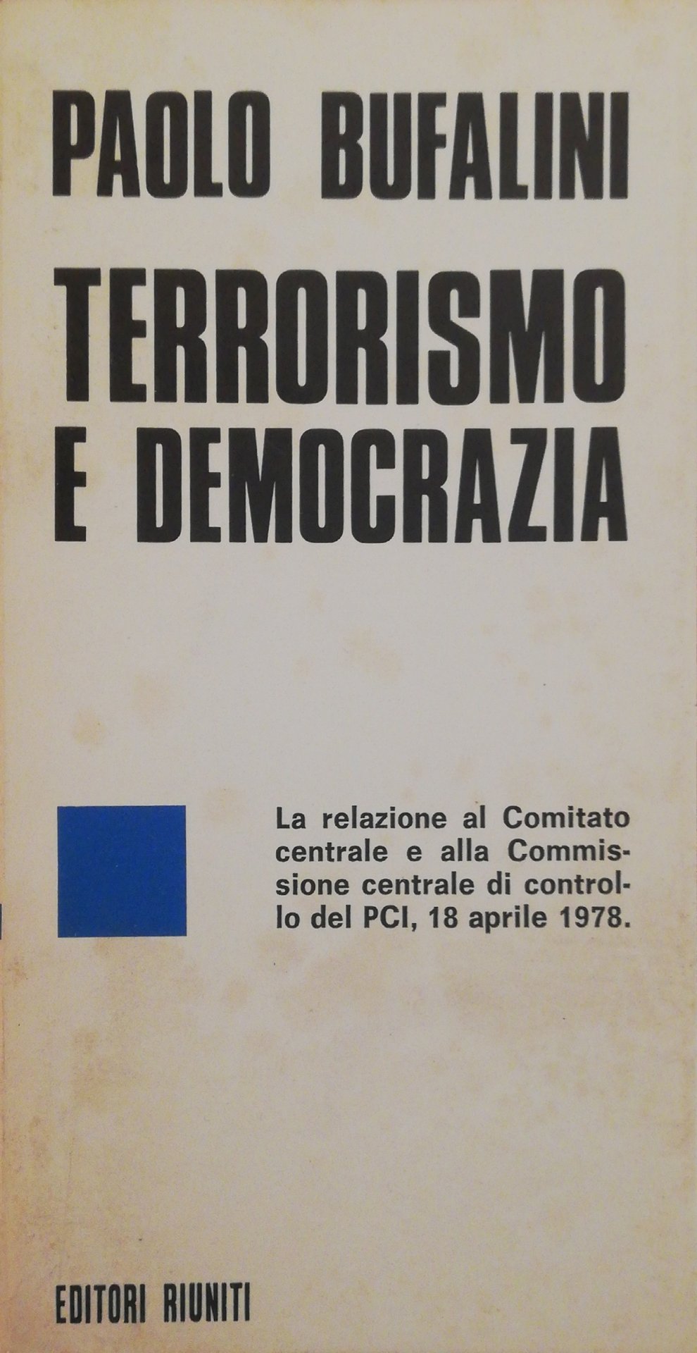 La relazione al Comitato centrale e alla Commissione centrale di controllo del PCI, 18 aprile 1978. in ottavo leg. bross. pp. 64 Buono (Good) Buon es. ma con segni del tempo.