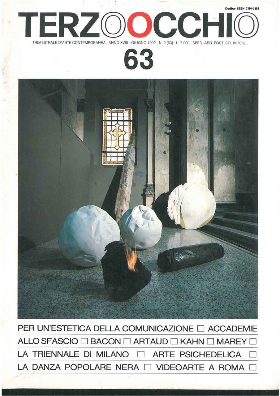 Terzoocchio, Trimestrale d'arte contemporanea. Anno 18, n. 2, (63), giugno 1992. Tra gli altri: Per un'estetica della comunicazione; Bacon; Artaud; arte psichedelica; videoarte a Roma