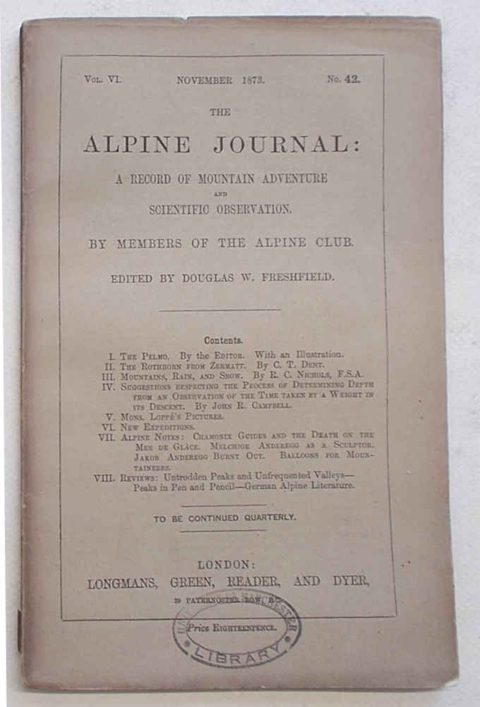 The Alpine Journal. November 1873. Vol. VI. No. 42.