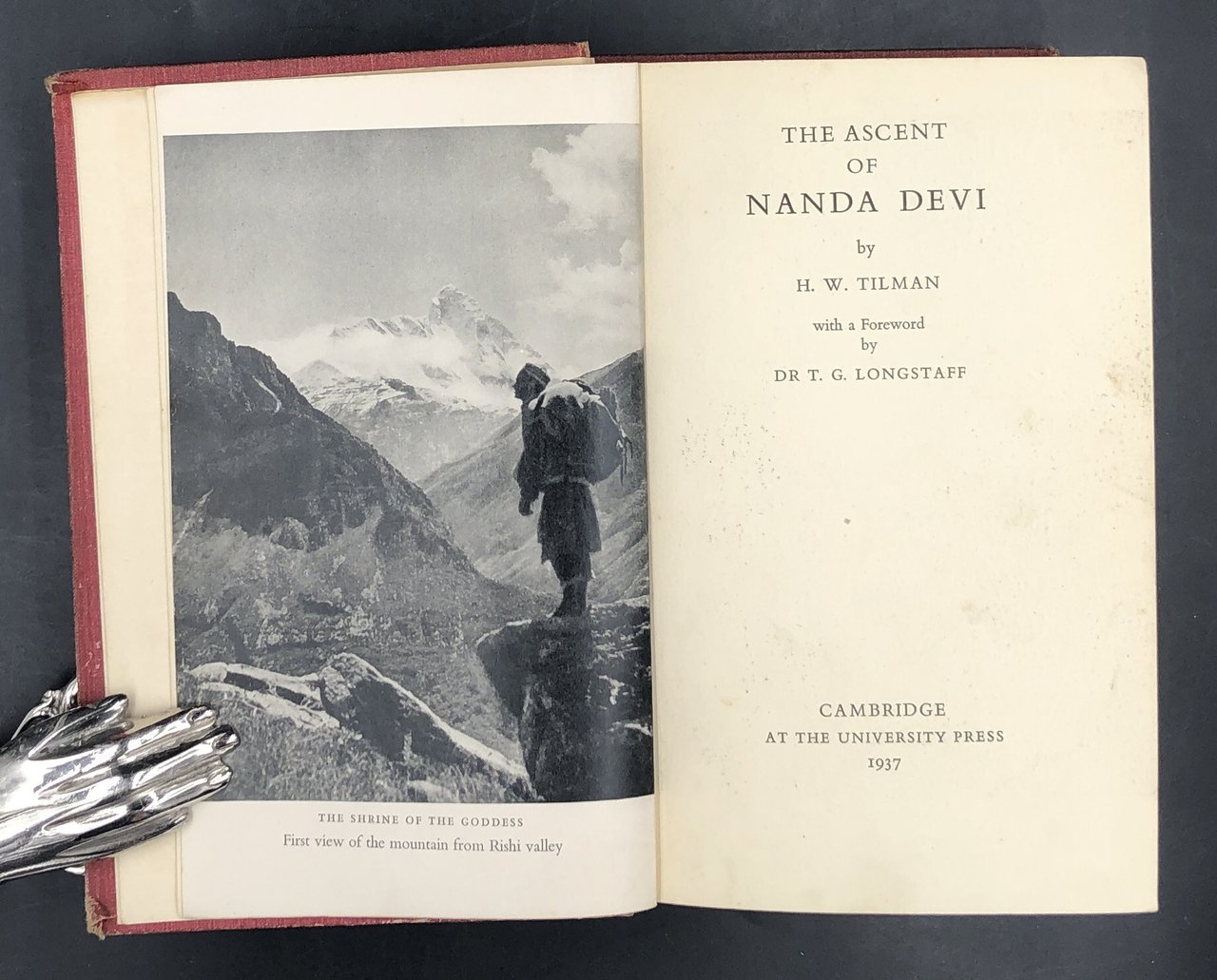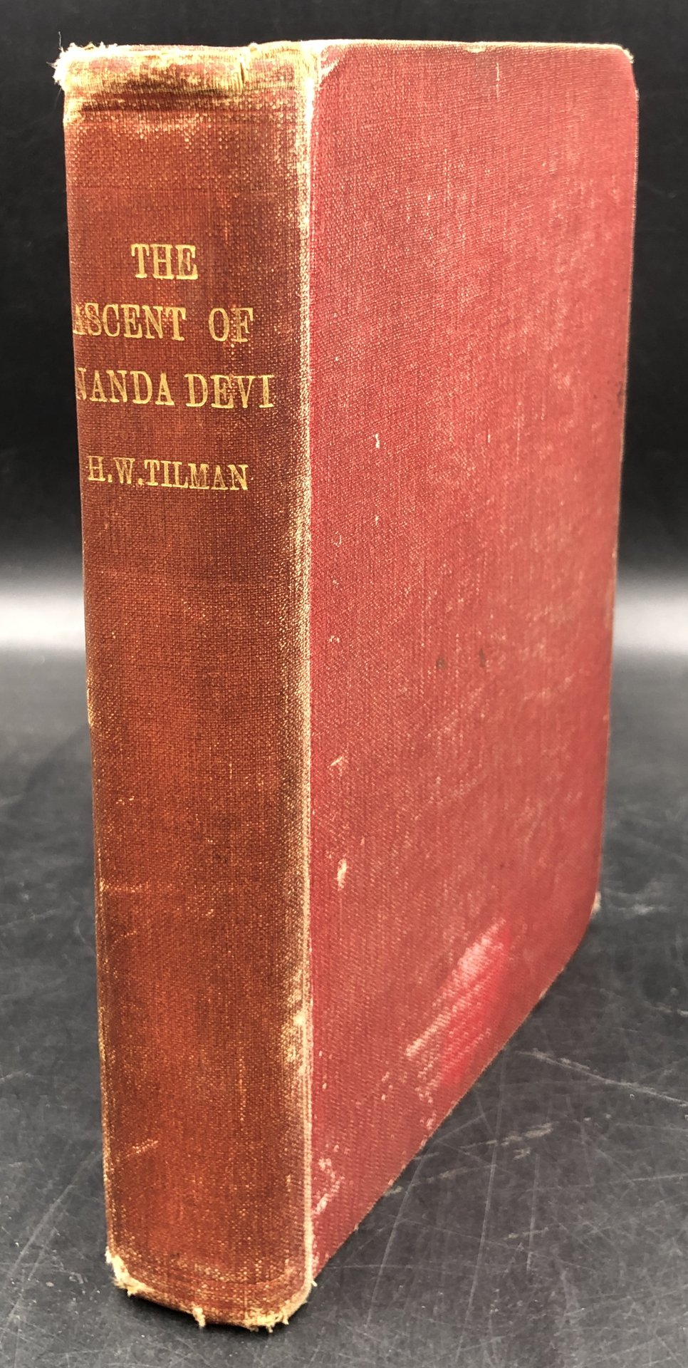 In-8° (cm. 21,7x14,2), pp. XII, (2), 235, (1) + 1 schizzo in bianco e nero ripiegato fuori testo + 1 cartina generale della zona + 34 FOTO in tavole in bianco e nero fuori testo. Tela editoriale, titolo oro al dorso, solida ma con usure a cuffie e cewrniere, restauro di cuciture a refe alla cerniera interna anteriore. Manca l'introvabile sovraccoperta. Resoconto della prima ascensione di Tilman e Odell, membri British-American 1936 Expedition all'allora più alta montagna mai ascesa fino ad allora. Un classico dell'alpinismo.