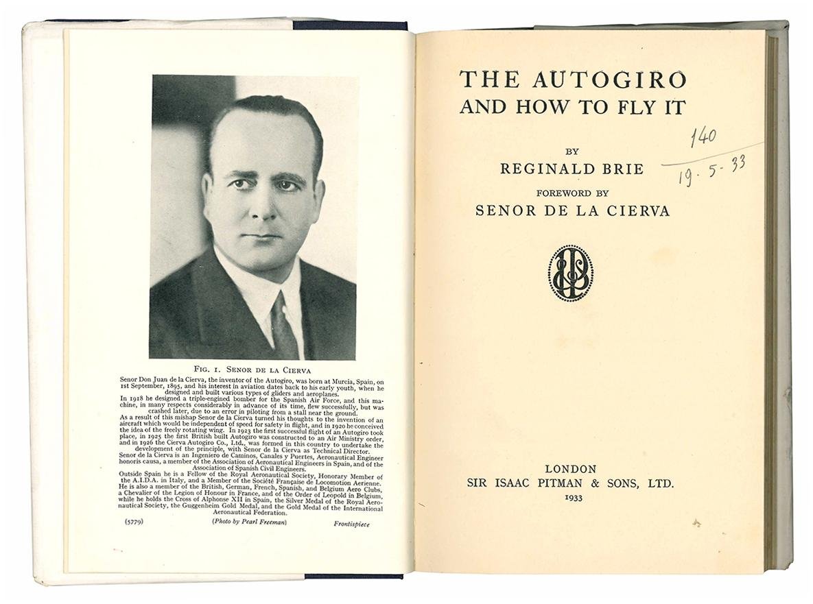 The Autogiro and How to Fly It by Reginald Brie foreword by Senor de la Cierva.