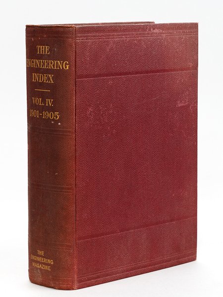 8vo, full editor's cloth, The Engineering Magazine, Copyright 1906, 1234 pages As explained in the preface, "this fourth volume of the Engineering Index represents the continuation of the work originally started by the late Professor J. B. Johnson in the Journal of the Association of Engineering Societies in 1884, and turned over by that Association to the Engineering Magazine, at the close of 1895. The previous volumes, published respectively in 1892, 1896 and 1901, covered with increasing fullness and thoroughness the field of technical engineering periodical literature, and in the present volume every care has been taken to maintain and advance the standard set by its predecessors". Good copy (binding slightly rubbed)
