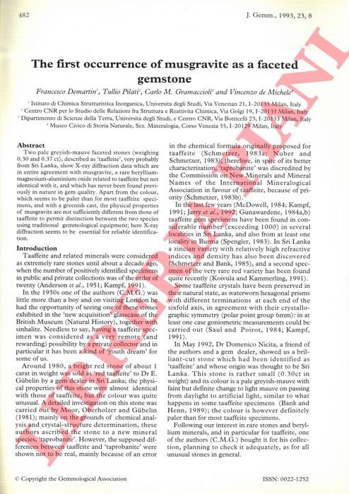 The first occurence of musgravite as a gemstone.faceted