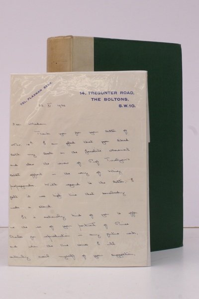 8vo., First Edition; green cloth, ivory cloth back lettered in silver, backstrip sunned to blank, else a very good clean copy. WITH AN A.L.s WRITTEN FROM THE AUTHOR'S RESIDENCE AT 14 TREGUNTER ROAD, THE BOLTONS IN LONDON'S CHELSEA THANKING THE RECIPIENT FOR THE OFFER OF A PORTRAIT FOR INCLUSION IN A FORTHCOMING BOOK. Presents ten years of research with a very useful bibliography
