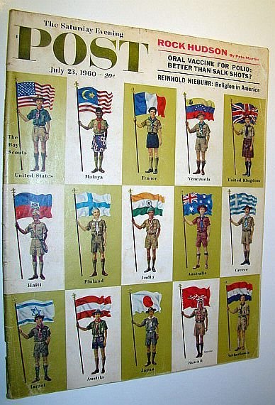 - The Saturday Evening Post, July 23, 1960 - Rock Hudson, Oral Polio Vaccine The Magic Lane, Captain Ashore, Girl in the Middle, The Boy and the Bear. Articles: Are We Safe From Our Own Bombs?, - with amazing photo of downed C-124 Globemaster which crashed, carrying three H-bombs, plus several other amazing crash photos, I Call on Rock Hudson - with nice color photos, How We Bagged the Mafia (conclusion), Oral Polio Vaccine - The Best Yet?, The Friendly Americans - Prakash C. Jain of India concludes we, are very nice people, Adventures of the Mind - The Religious Traditions of Our Nation, The Face of America - Moving Day - great color photos of Mrs., Kathryn C. Sutton's home being moved from its original location, in Bridgewater, PA, The Love Life of a Shy Bird - rare photo of a hen woodcock atop, her egges. Serials: The Secret of Sidewinder Gulch (part 4 of 7), The Case of the Duplicate Daughter (conclusion). Ads: Hotpoint, Fridges (inside front cover), Boeing 720, Acushnet Golf Balls, Firestone Tires, Bayer Aspirin, RCA Whirlpool Gass Appliances, Hamm's Beer, Morris 1000 car, 1960 Chevrolet Trucks - two-page color ad, Schlitz Beer - color centerfold, Shasta Soda, Two-page GM Diesel ad features great large photo of Euclid, scraper at work, US Savings Bonds, B.F. Goodrich Tires - two color pages, Dial Soap, L&M Cigarettes Medicine Magazine Back Issues