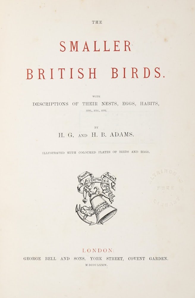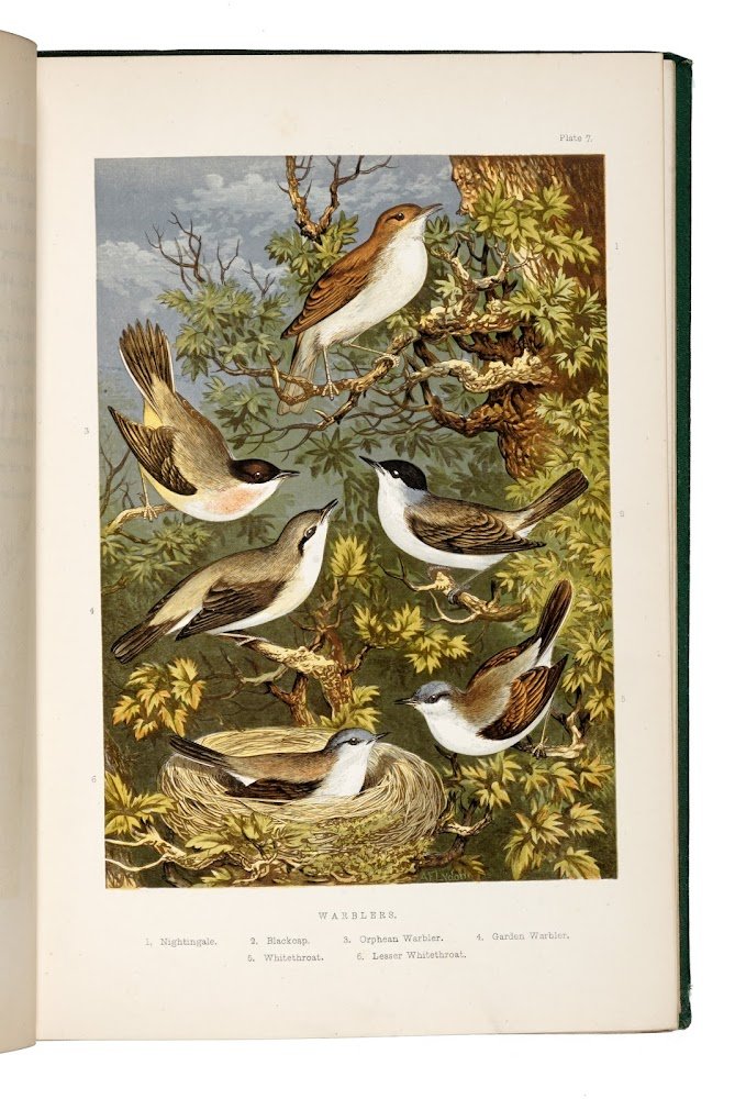 248x170 mm. iv, 252 pp. and 32 color lithographic plates of birds and eggs. Publisher's decorated cloth. Stamps of the Altrincham Public Libraries. First edition.