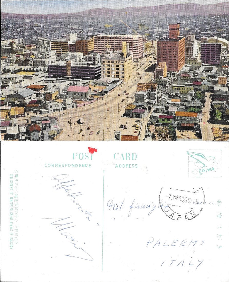 The street of Tenzintyo great view of Hukuoka. Viaggiata 1963