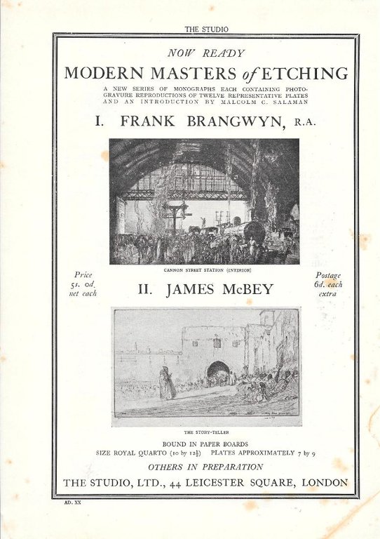 The Studio, Leicester sq. London. Modern masters of etching. Advertising 1924