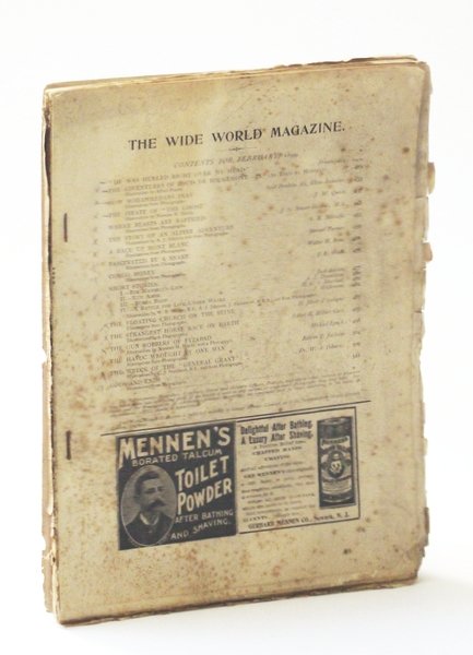 - The Wide World Magazine - An Illustrated Monthly, February (Feb.) 1899, Vol. 2, No. 10 - Strangest Horse Race on Earth, Gun Robbers of Fyzabad Islam Pacific Cordage Explosion James, Teer Yewell Adventures of Louis De Rougemont - Part VI, How Mohammedans Pray - photo-illustrated article, The Pirate of "The Ghost" - a stowaway saves a blockade-runner, Where Beasts are Baptized - astonishing ceremonies in Brittany -, photo-illustrated article, The Story of an Alpine Adventure - Miss A.E. Metcalfe and Miss, M. Cartwright take a wrong turn in the Swiss mountains, A Race up Mont Blanc, by Samuel Turner (with is photo), Fascinated by a Snake - photo-illustrated tale from Australia, Congo Money - fascinating photo-illustrated article showing, grass mats, cowrie shells, beads, etc., Bob Mansell's Lion, Run Amok - Borneo tale by E.W. Barrant (with his photo), Floating Church on the Seine - article with nice photos, Strangest Horse Race on Earth - the 'Palio' of Sienna - article, with great photos, Gun Robbers of Fyzabad - tale related by veteran Michael Lynch, with his photo, The Havoc Wrought by One Man - Chinaman Gong Ung Chung blows up, powder magazine at the Western Fuse Works in Oakland, California - article with photos, The Wreck of the "General Grant" - a desert island experience, Illustrations of the curious "Knapp" roller-boat, Photo of William Laurens and the boat he lived in for years, Photo of a bag of 369 caribou in Newfoundland Travel, Exploration & Adventure Economics Magazine Back Issues