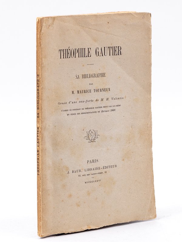 Théophile Gautier. Sa Bibliographie. Ornée d'une eau-forte de M. H. Valentin d'après le portrait de Théophile Gautier peint par lui-même en tenue des représentations de Hernanin (1830) [ Edition originale ]