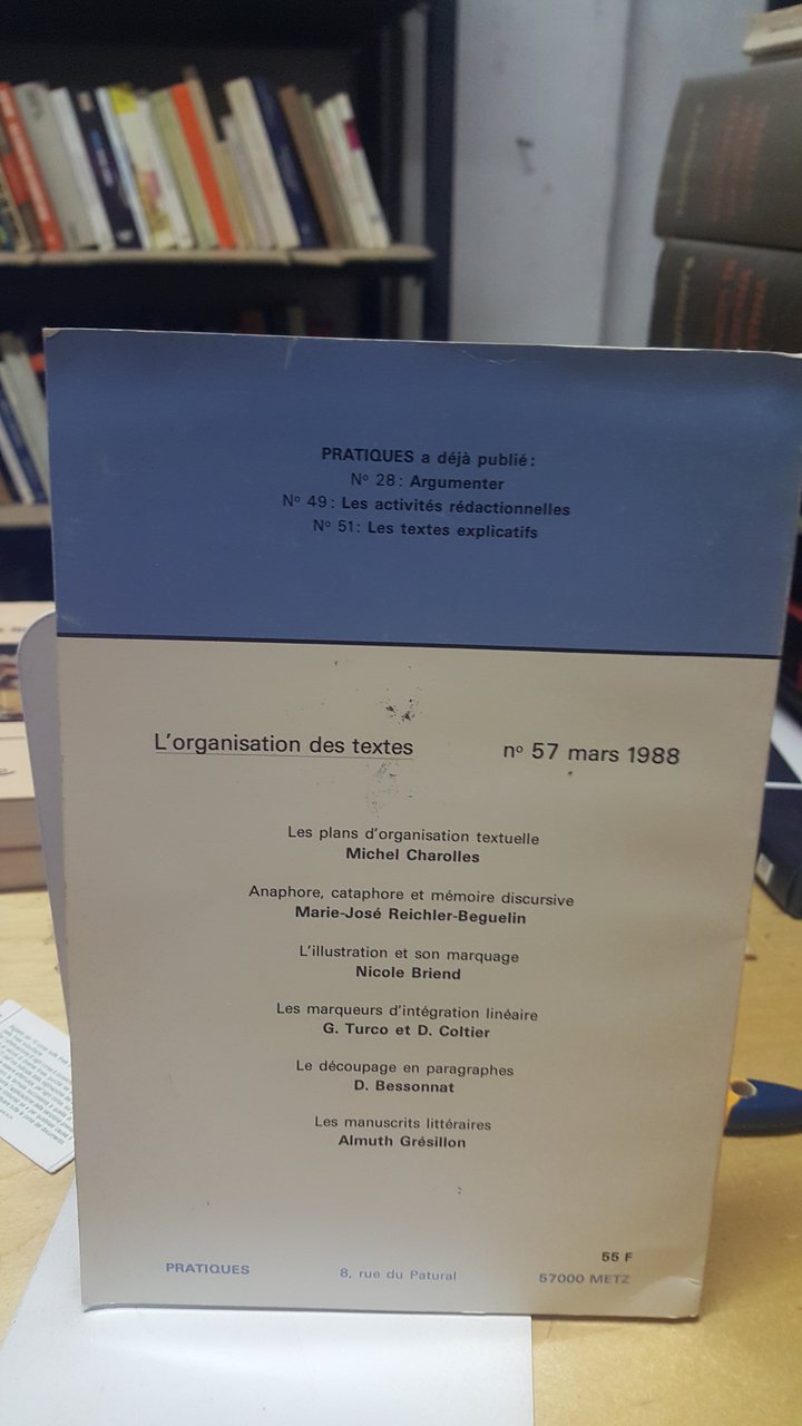 theorie pratique l'organisation des textes mars 1988. , 1988 english, pp.128 copertina con lievi segni di usura e qualche grinza