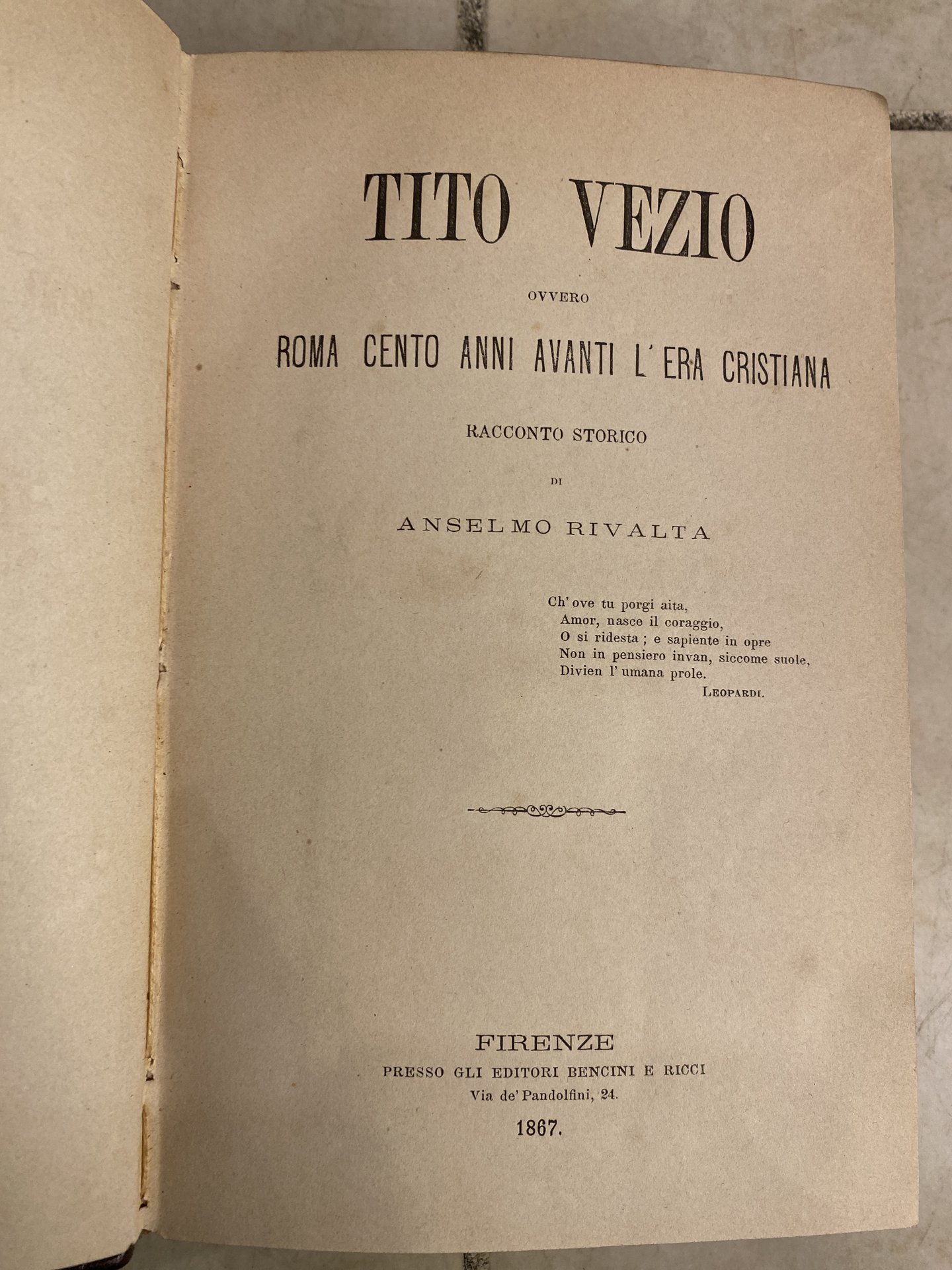 Tito Vezio ovvero Roma cento anni avanti l'era cristiana - racconto storico