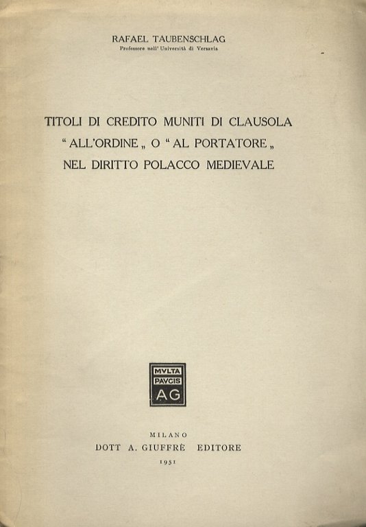 Milano, Giuffrè, 1951, in-8, brossura editoriale. Estratto da “Studi in memoria di Emilio Albertario”, vol. II, pp. 621-629.