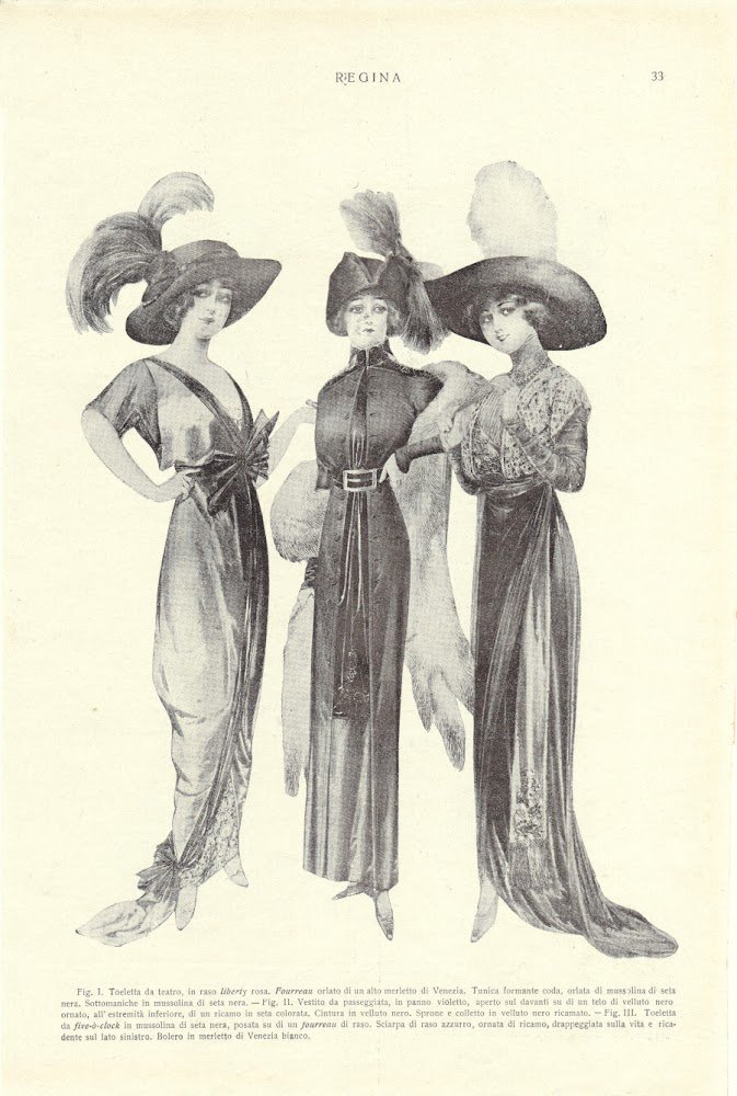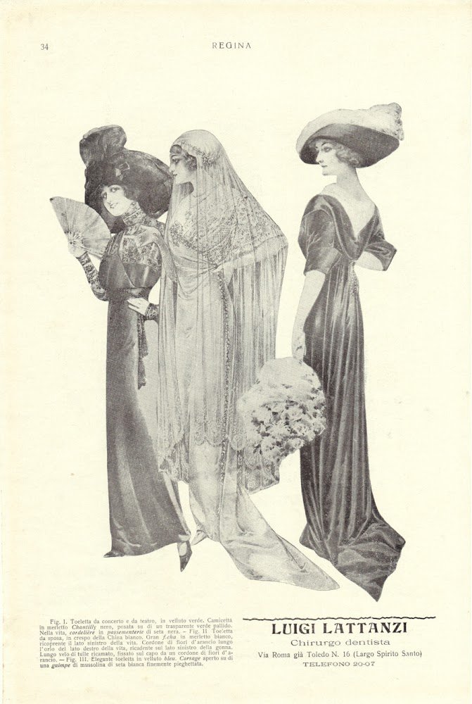 Toeletta da concerto; da sposa; in velluto blu/ Toeletta da teatro; da passeggiata; five-ò-clock. Immagine 1913.