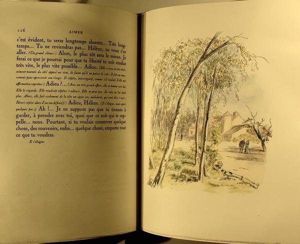 Lausanne, Editions du Bibliophile, 1942. 3 volumes grand in/8, reliure chagrin vert, tête dorée avec étui, une petite fente sur un vol, 170, 157 et 163 pages. Illustré par des gravures en couleur de BERTHOLD MAHN in et hors texte.