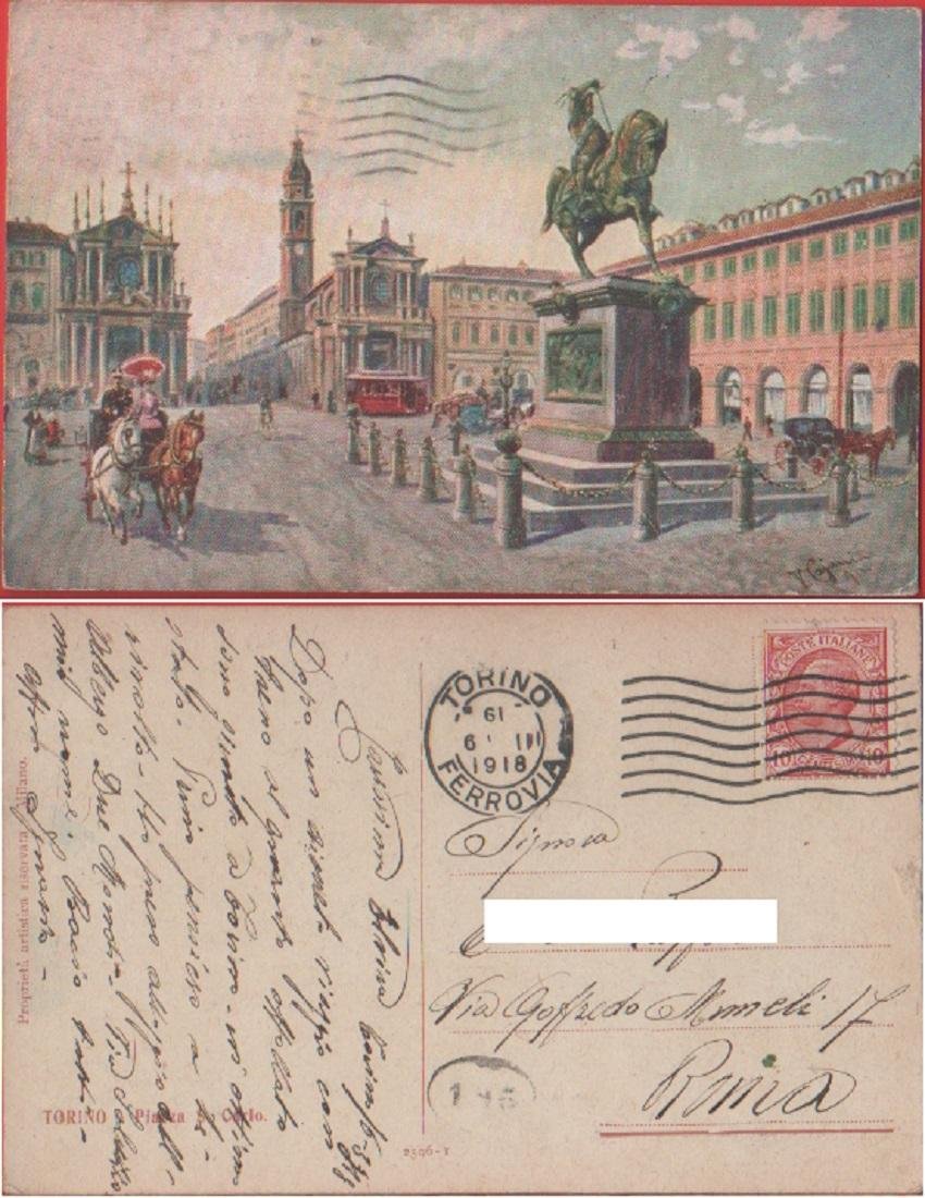 Torino. Piazza S. Carlo. Viaggiata 1918. Pittorica
