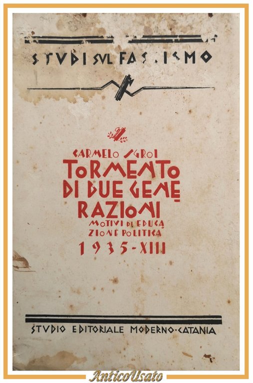 TORMENTO DI DUE GENERAZIONI Carmelo Sgroi 1935 motivi educazione politica Libro