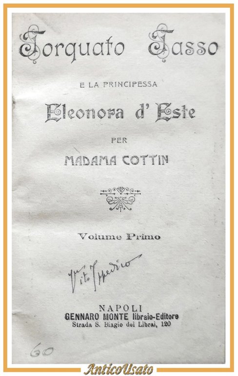 TORQUATO TASSO E LA PRINCIPESSA ELEONORA D'ESTE per Madama Cottin 3 volumi libro