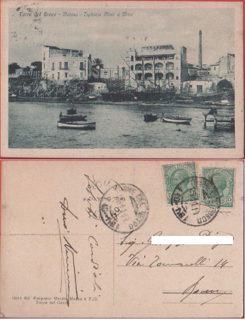 Torre del Greco (NA). Marina. Trattoria Mimì a Mare. Viaggiata 1918. Barche