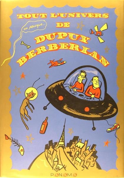 Editions du Panama 2006, in/8 reliure éditeur et jaquette couleurs, 200 pages. Tout l'univers de Dupuy-Berberian retrace plus de vingt années de collaboration graphique. De leurs sérigraphies représentant Kiki, Joséphine Baker, Arletty, Jacques Tati ou Charles Trenet, à leur travail publicitaire et leurs dessins pour la presse en passant par les couvertures pour Télérama, la campagne pour les vins Nicolas, mais aussi les pochettes de disque, les affiches de film, les livres, les carnets de croquis. Tout leur univers, ou presque !