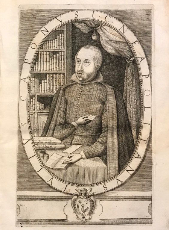 In-folio (cm. 31,5), legatura coeva in piena pergamena rigida con nervi, titolo anticamente ms. al dorso e al taglio inferiore (strappi al dorso); pp. [30] 680 [54] con 1 tavola di ritratto f.t., frontespizio in rosso e nero con gradevole vignetta silografica (cigno e tre stelle); sporadiche bruniture e lievi fioriture. Prima edizione di questo trattato del giurista napoletano (di orientamento filocuriale e sostenitore di una interpretazione estensiva delle prerogative giurisdizionali ecclesiastiche) che pochi anni prima era tra l'altro posto in arresto insieme a cento studenti per aver clamorosamente trasgredito i divieti di insegnamento extra universitario con le sue lezioni private affollatissime. Cfr. Sapori 512. Esemplare molto buono. (Np1)