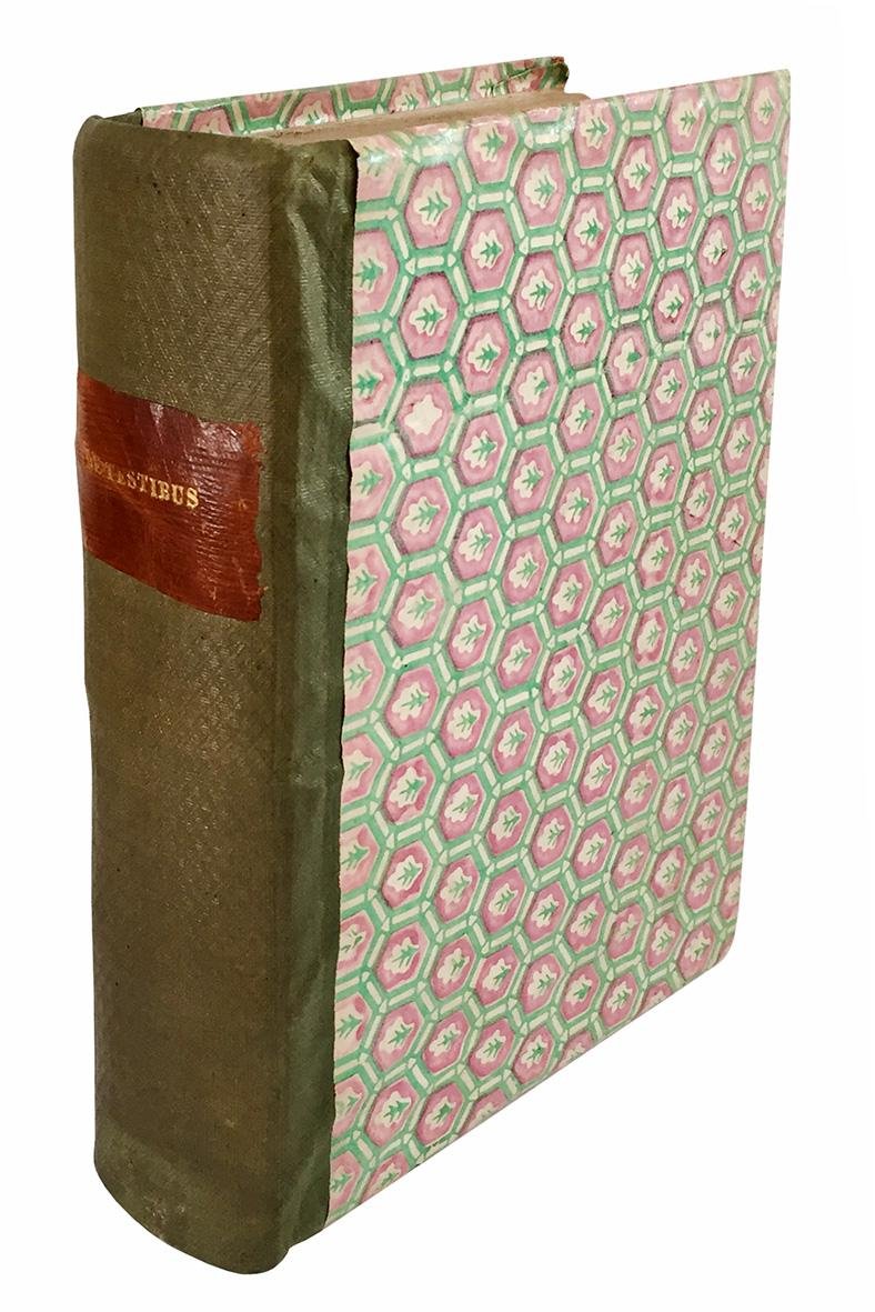 In 4to (mm 204x148); pp. [128], 803, [1]. Segnatura: †4 a-p4 A-Ccc8 Ddd10. Marca xilografica al front (elefante con torre sul dorso entro cornice figurata. Motto: "Tarde sed tuto"). Capilettera, frontalino e finalino xilografici. Leggeri aloni marginali, lievi fioriture. Mezza tela editoriale moderna, piatti rivestiti con carta colorata. Titolo in oro su tassello al dorso. Ex libris cassato al margine inferiore del frontespizio.