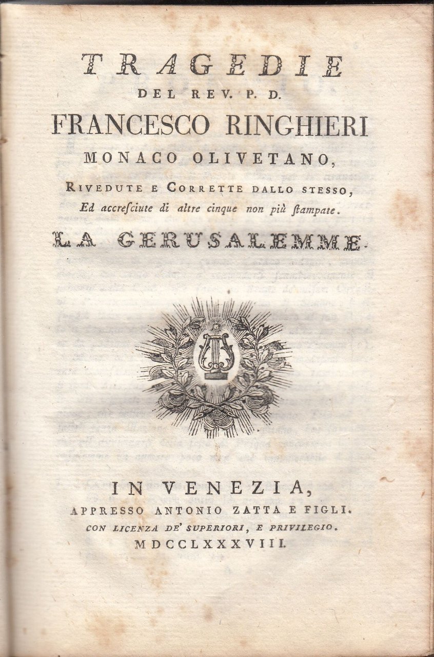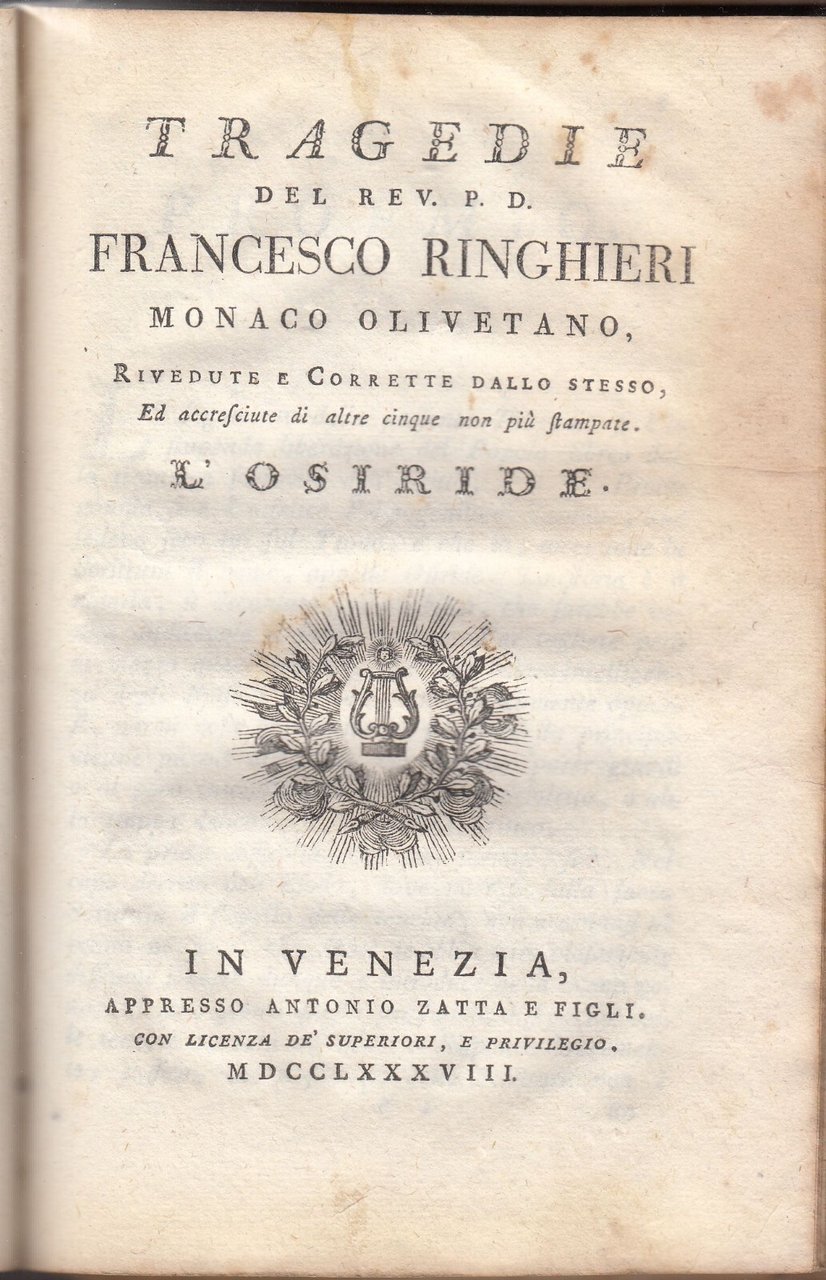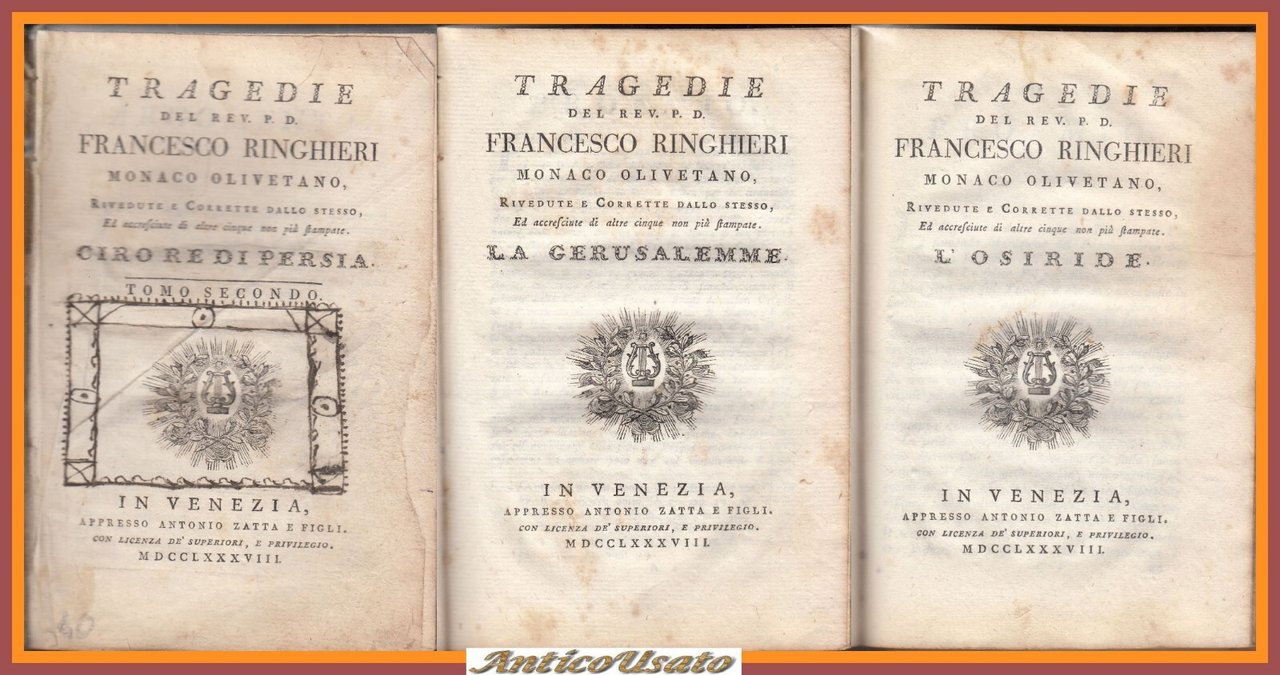TRAGEDIE del reverendo Francesco Ringhieri tomo II Zatta 1788 libro antico