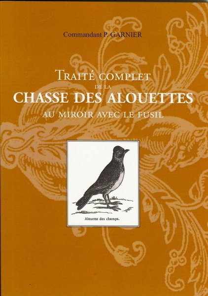 Réimpression du texte de 1866 (seconde édition), édition Lucas, Lyon, 2011. In/8 broché, couverture illustrée d'une vignette, xi f., 65 pages. Les premiers écrits concernant cette chasse remontent au XVIIe siècle. Un temps interdite, cette pratique est à nouveau autorisée par l'arrêté du 15.06.2003 modifié en 2005 mais avec un miroir dépourvu de facette réfléchissante. On y trouve tout ce qui concerne l'oiseau ainsi que sa chasse bien spécifique, sa technique qui peut également s'appliquer à d'autres oiseaux. Réimpression d'un texte rare de 1866. Thiebaud 444 pour l'édition originale de 1864.