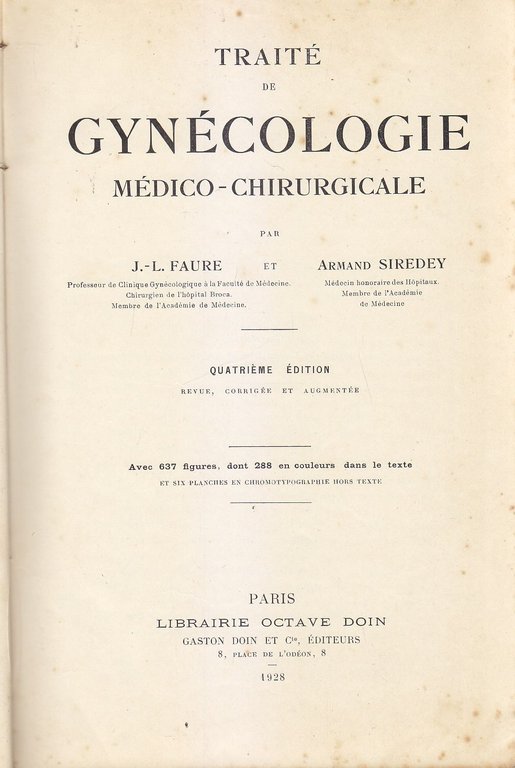 TRAITE' DE GYNECOLOGIE MEDICO CHIRURGICALE J. L. Faure e A. Siredey.