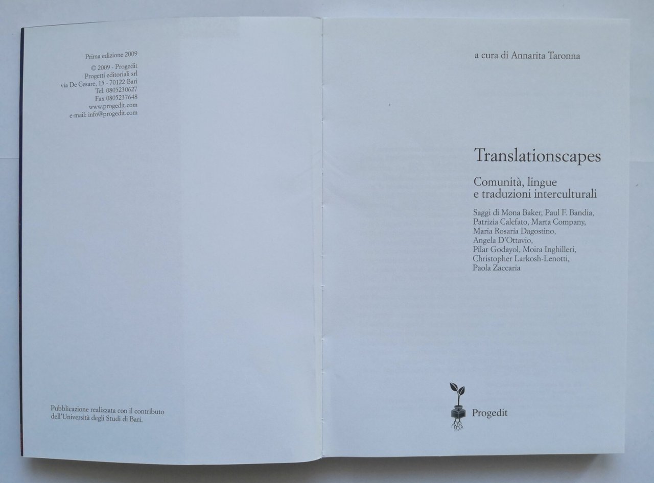 TRANSLATIONSCAPES di Annarita Taronna 2009 Progedit Libro comunità lingue traduz