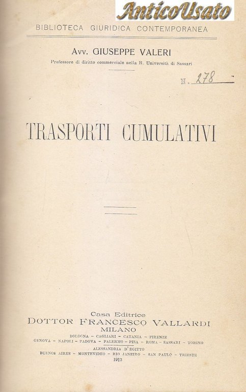 TRASPORTI CUMULATIVI di Giuseppe Valeri 1913 Vallardi editore libro