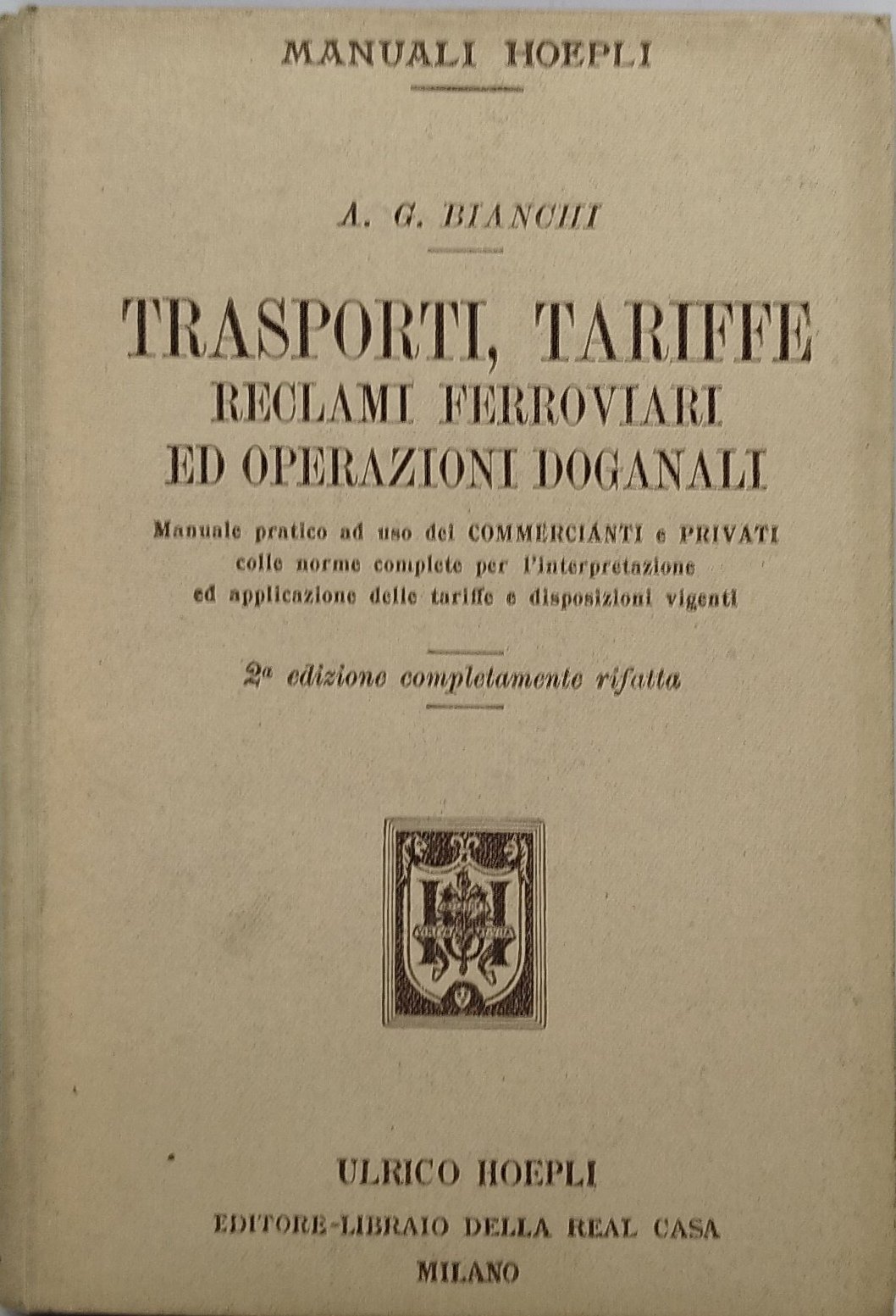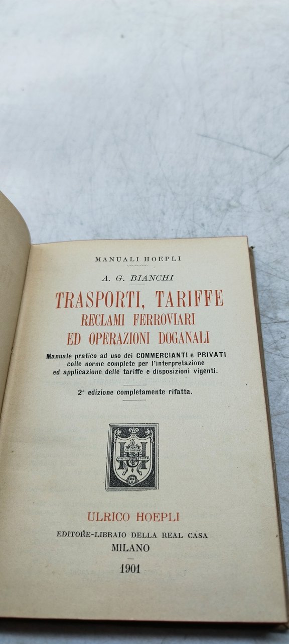 a g bianchi trasporti tariffe reclami ferroviari ed operazioni doganali. , hoepli 1901 italiano, 206 °