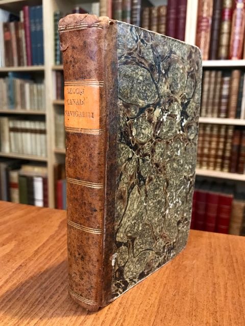 In-8° piccolo (cm. 15,8), legatura coeva in m. pelle con titolo in oro su tassello e filetti al dorso (strappo alla cuffia), tagli gialli; pp. XVI 365 [3] con 2 tavole ripiegate f.t. in fine e 1 tavola di ritratto dell'autore in antiporta f.t. (Cattaneo). Seconda edizione con nuove aggiunte del ricco trattato sui sistemi di chiuse e dighe per la creazione dei navigli e dei canali navigabili lombardi. Cfr. Predari 47. Buon esemplare. (SO5)