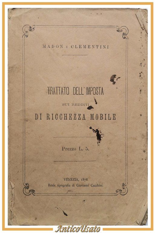 TRATTATO DELL'IMPOSTA SUI REDDITI DI RICCHEZZA MOBILE di Madon e Clementini 1878